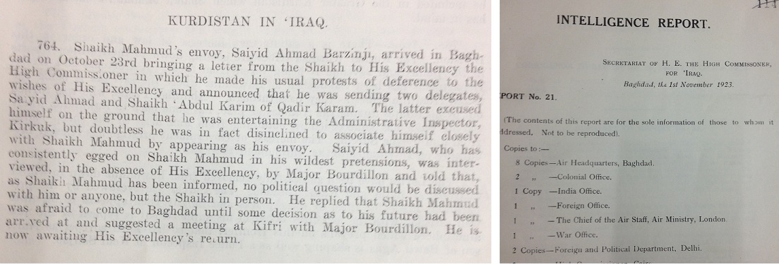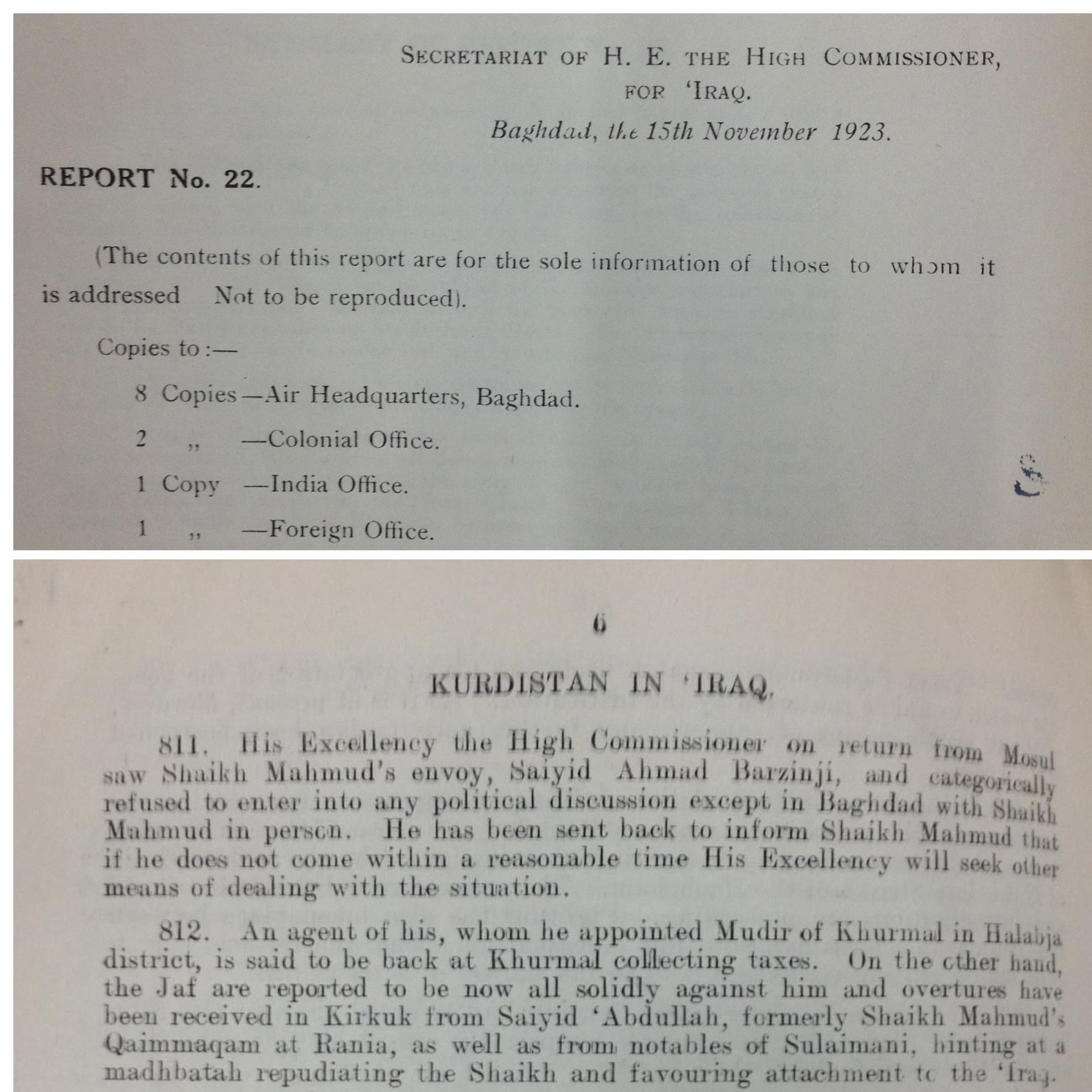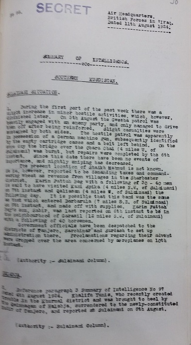 رەنجدەر شێرازاد بارەگای ئاسمانی، هێزەکانی بەریتانیا لە عێراق، لە بەرواری ٢٦ی تەمموزی ،١٩٢٤. ژمارە:٩٢، نهێنی. پوختەی زانیاری هەواڵگری. باشووری کوردستان.…