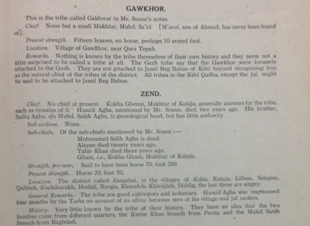 تێبینی گشتی: ئەم هۆزە زراعی باشن و نیشتەجێن. حەمید ئاغا بۆ ماوەی چوار مانگزیندان کرا لا لە لایەن تورکەکانەوە بەهۆی شەڕوپێکدادانی نێوان پیاوانی گوندەکەی وهێرشکەرانی جاف.